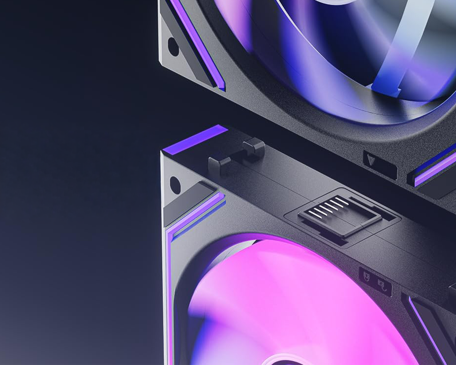 Özel kilitlenen konektör yapısı sayesinde kurulum son derece pratiktir. Her fan grubu için yalnızca tek kablo ile temiz ve düzenli bir sistem görünümü sağlar.