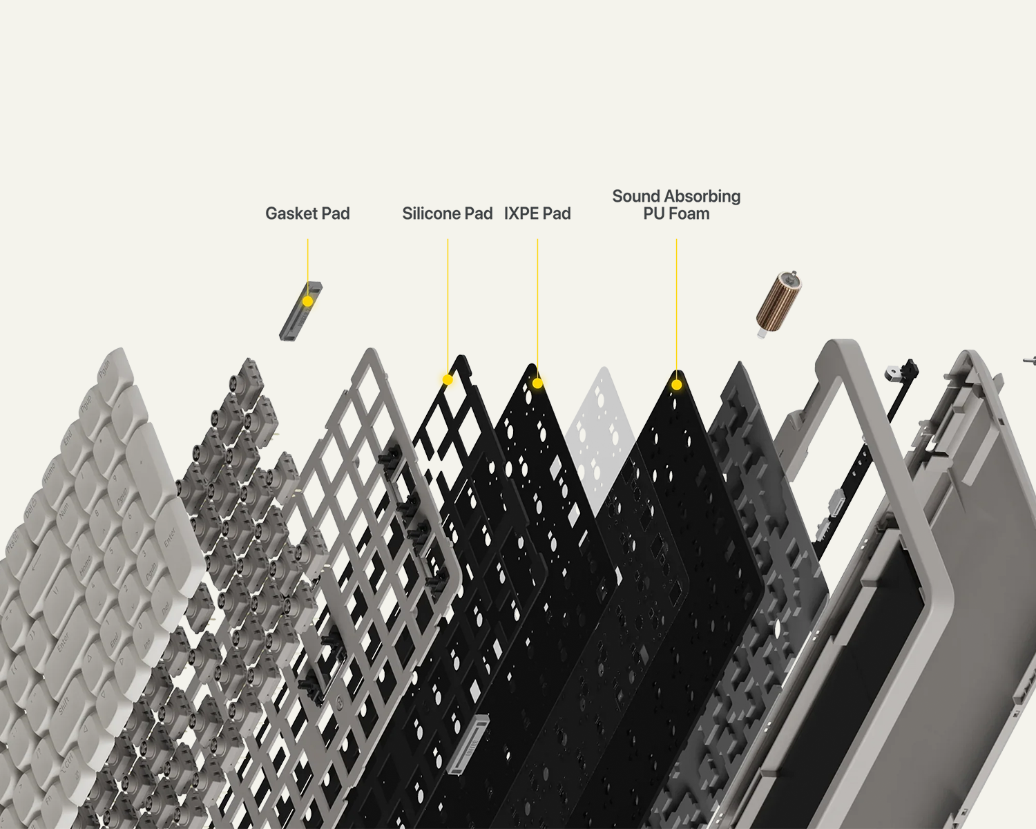 Geliştirilmiş ses sönümleme katmanları sayesinde titreşimler etkili şekilde emilir ve yankı minimuma indirilir. Daha yumuşak, dengeli ve keyifli bir yazım sesi sunarak üst düzey bir akustik deneyim sağlar.