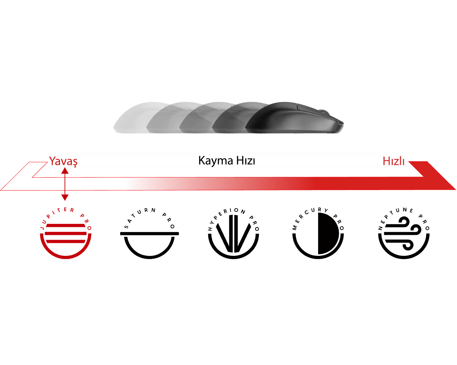 Jupiter Pro, maksimum hassasiyet için tasarlanmıştır. Yavaş glide karakteri ve güçlü durdurma gücü sayesinde imleci tam istediğin noktada kontrol altında tutar. İnce dokulu Double Piqué kumaş yüzeyi, pürüzsüz bir temas hissi sunarken tutarlı sürtünme oluşturarak kontrol hissi sağlar.
