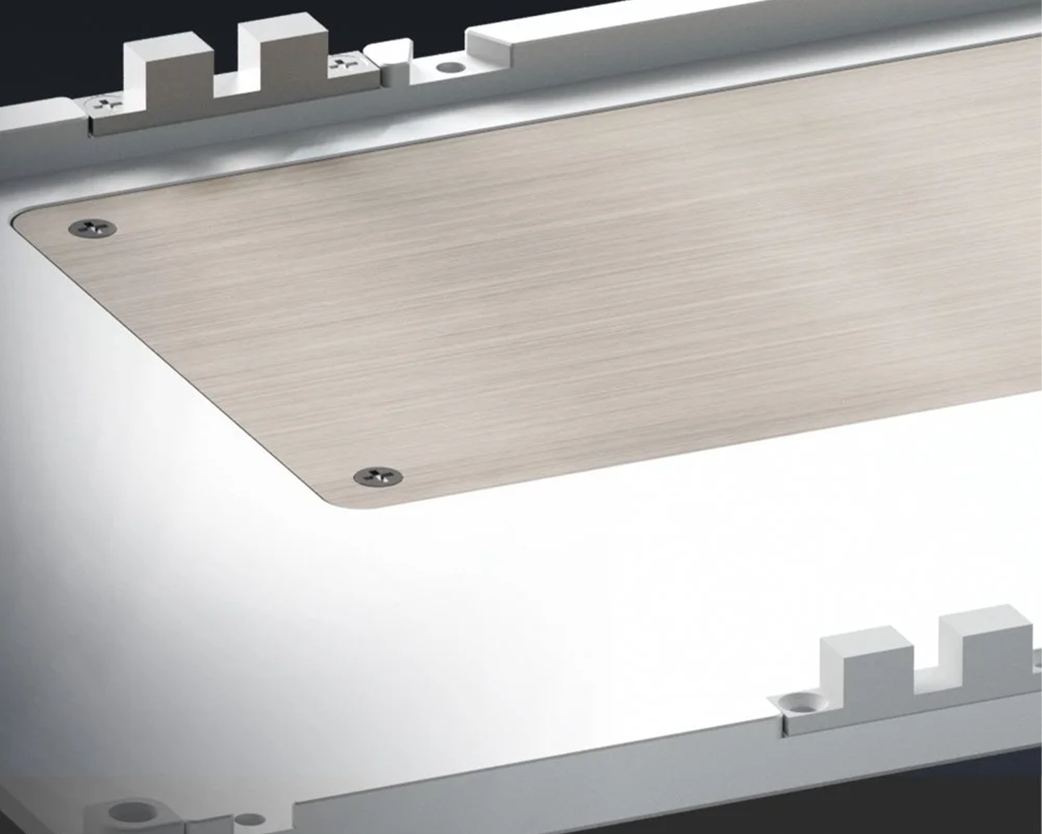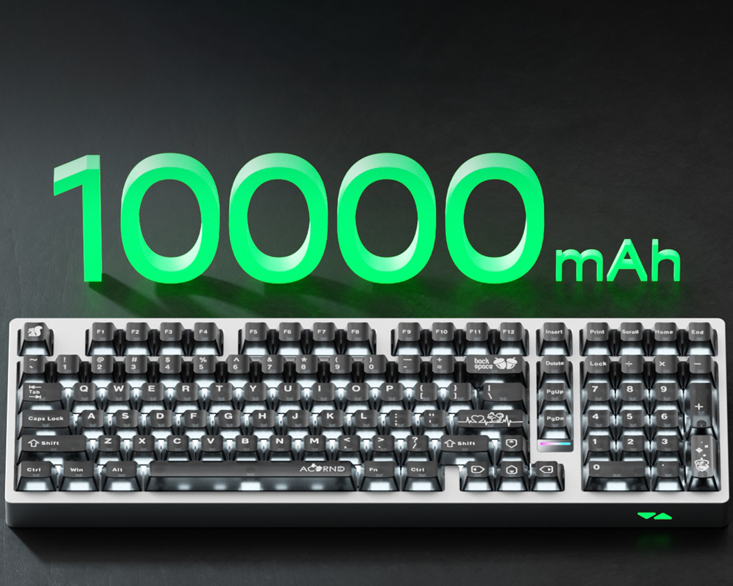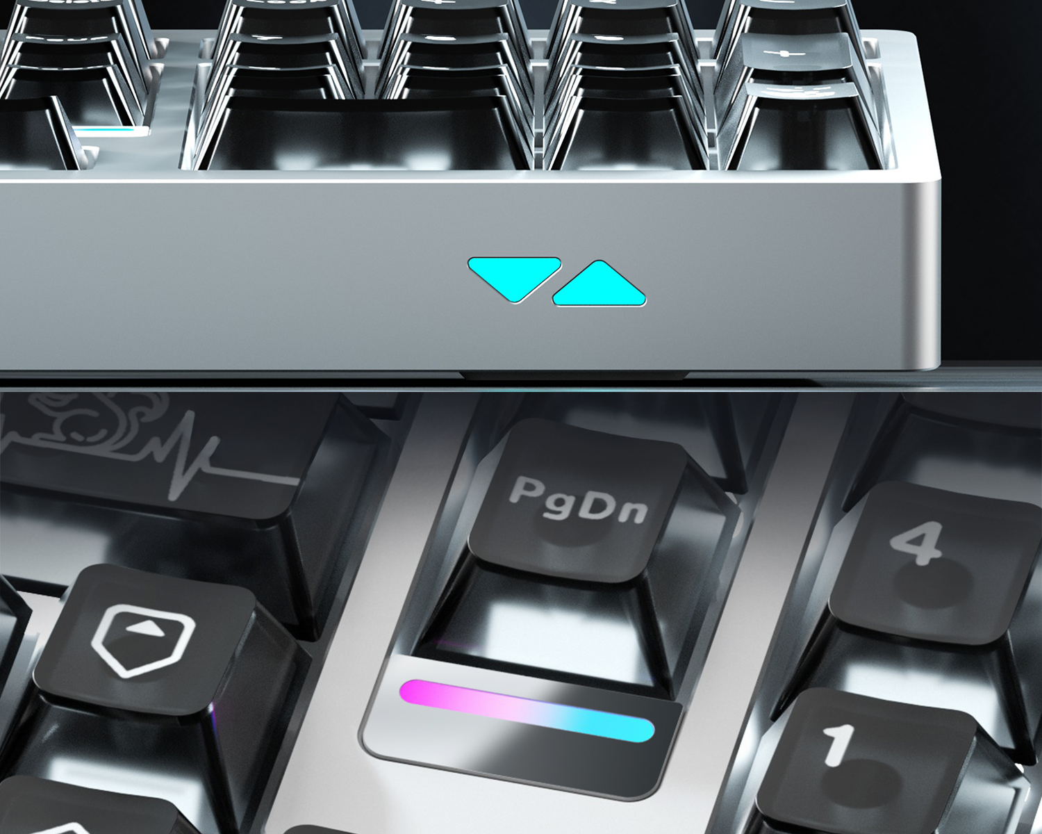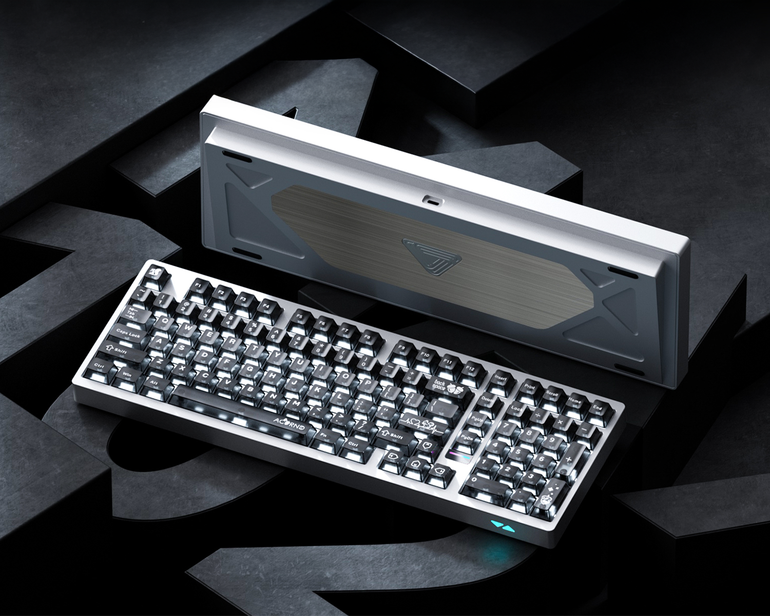 Kasa, markanın tasarım anlayışını yansıtan iki farklı aydınlatma detayıyla tamamlanır. Page Down tuşunun altında konumlanan metalik yüzeyli LED şerit, aynamsı bir yansıma etkisi oluşturarak şık bir vurgu katar. Sağ ön köşede yer alan silikon difüzörlü geometrik dekoratif ışık ise aydınlatmayı eşit şekilde dağıtarak bütüncül ve dengeli bir görsel karakter sunar.