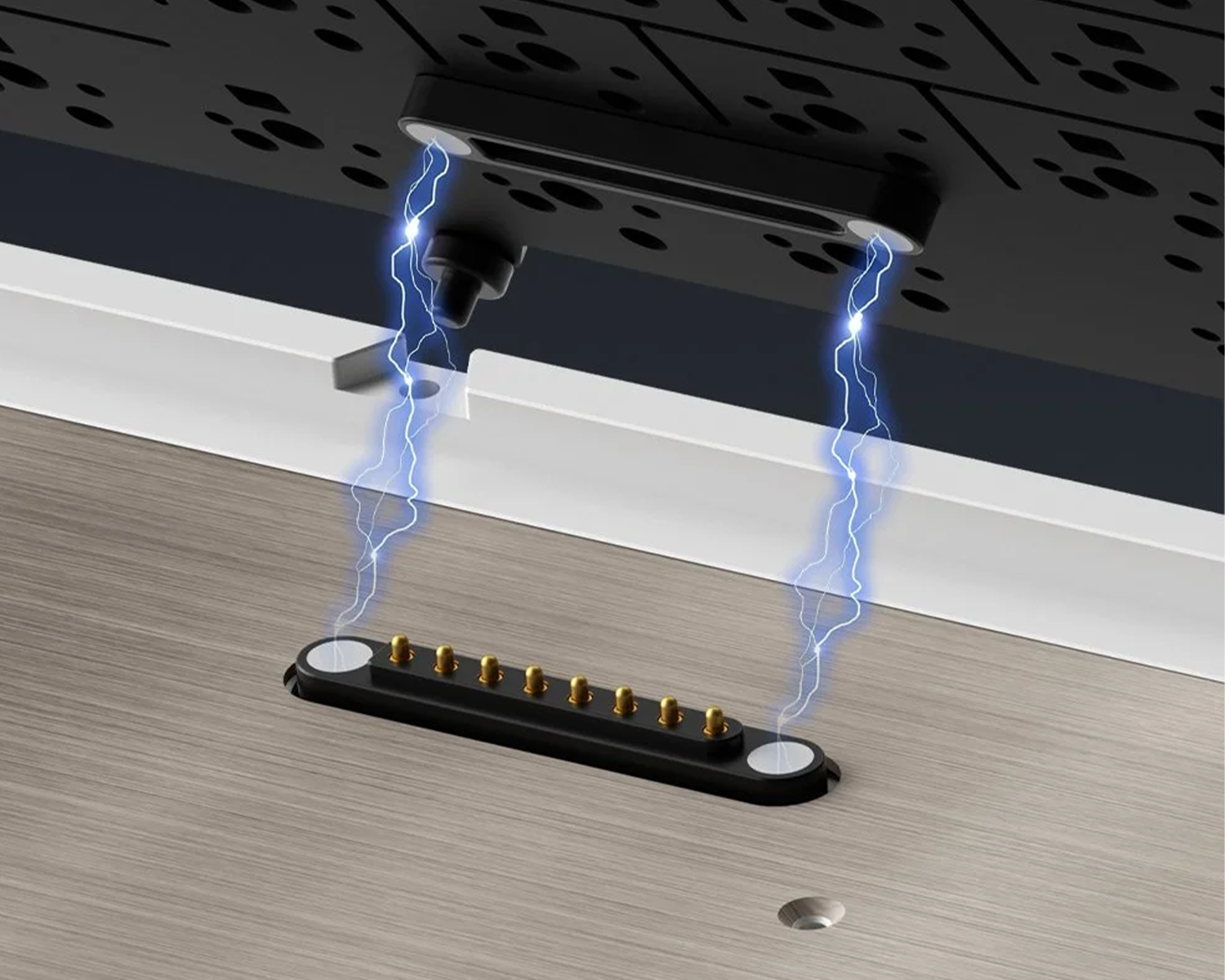 Klavye, manyetik pogo pinler ile mekanik ball-catch kilitleme sistemini bir araya getiren iki parçalı hızlı bağlantı yapısına sahiptir. Bu yapı, montaj ve sökme işlemlerini zahmetsiz hale getirir. 8 Pinli pogo pin tasarımı sayesinde enerji iletimi daha stabil olur; oksidasyon ve temas aşınmasına karşı uzun süreli, güvenilir bir performans sunar.