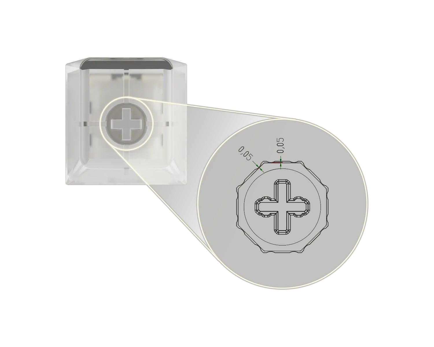 Yenilikçi sekizgen stem tasarımı, geleneksel switchlerin 45° baskı sapmasını ortadan kaldırarak hem dikey hem de çarpraz basışlar için eşit tetik mesafesi sağlar.