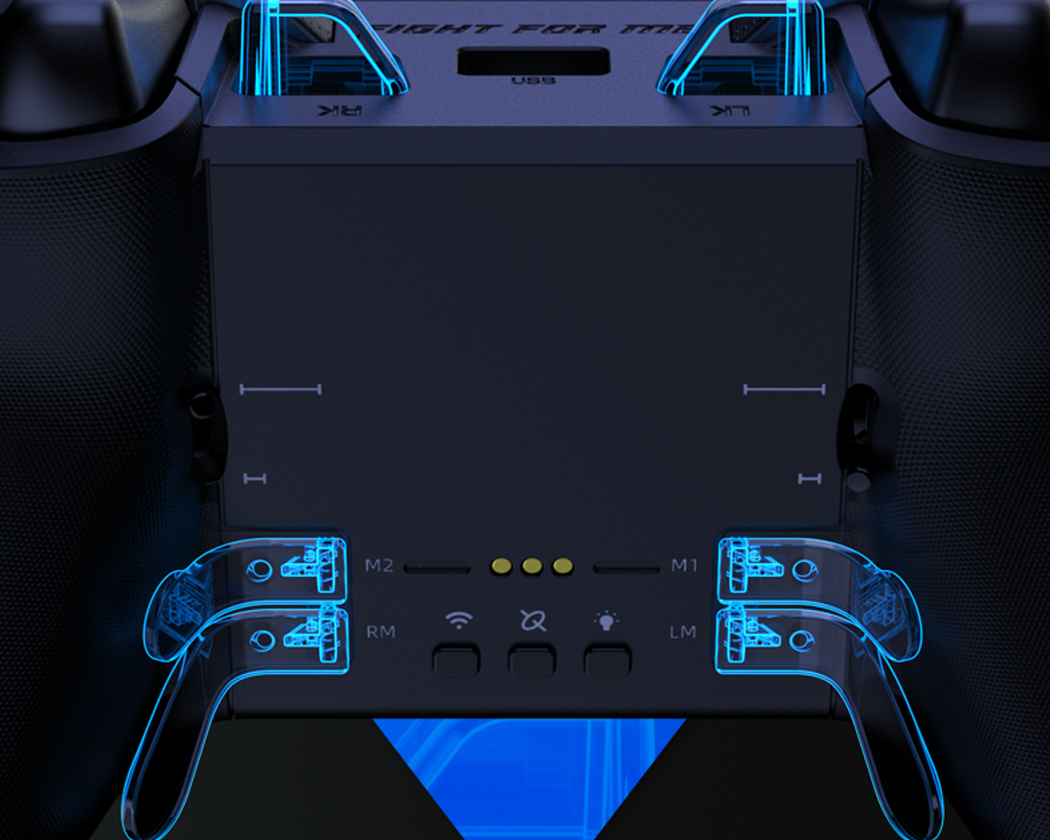 4 adet titreşim motoru ve gelişmiş 6 eksenli hareket algılama sistemine sahiptir. Tuşların etrafında bulunan RGB aydınlatmalar ile şık bir görüntü sunar.